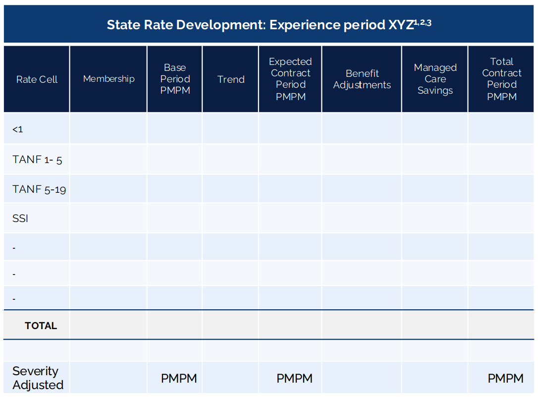 » This will be done by medical and pharmacy category and rate cells, allowing client to determine viability of state rates on client experience – PMPMs will be adjusted for plan factors and membership mix for state and clients actual membership distribution